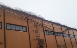 Наиболее распространены здания из сэндвич панелей с большими скатами. На них образуются большие наледи.