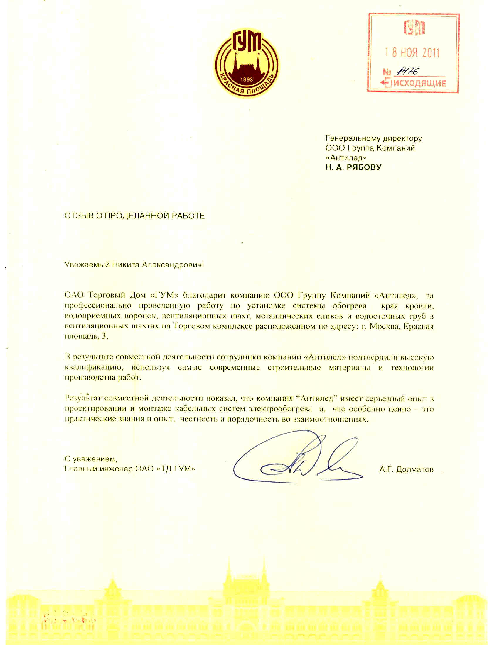 Среди наших заказчиков ТД ГУМ, Московская городская дума, Живописны мост через реку Москву, Сеть Магазинов “Апельсин”, Больницы, Поликлинники, Детские сады, множество частных домов.